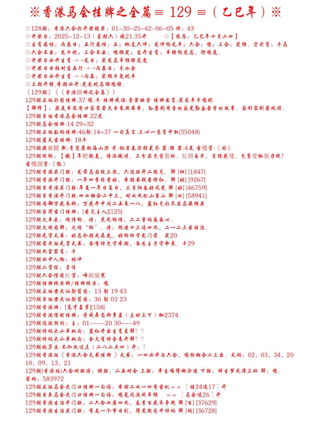 > 129期手写马会挂牌[图]